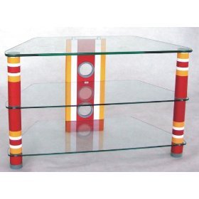 This Sports Themed Entertainment Center will be a great addition to any Man Caveenvironment!These are new TV Stands that can hold a flat panel TV that is up to 32" in screen size. They have 3 clear tempered glass shelves. With the cord management system you won't have to worry about unsightly cords. It has great room for DVD players, VCRs, video games and stereo equipment. This TV stand also features a color theme that goes with your favorite teams colors. Great for use in a game room. This holds up to 77 pounds.We also have a larger size available which can accommodate a screen size up to 42". You can select this size in the product options next to the "Add To Cart" button.For specific sizes on the shelves, please click on the main picture to then see an outline of the dimensions for each shelf.