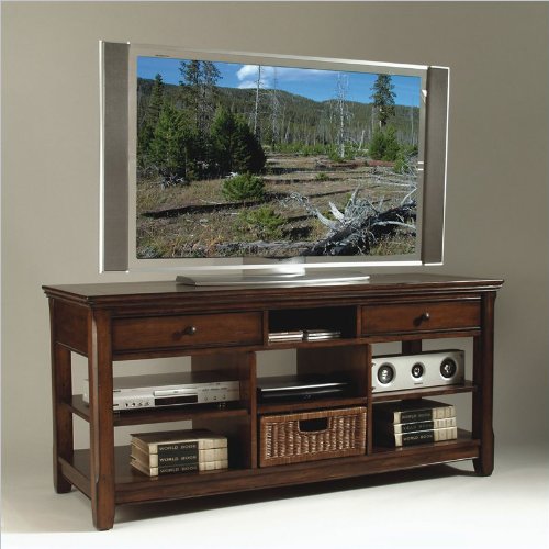 The pieces of the Magnussen E1297-05 - Tanner Home Entertainment Collection 58 Wide TV Stand Entertainment Console collection crafted from poplar solids and cherry veneers have as much storage as they have character Featured in a worn tobacco finish the Magnussen E1297-05 - Tanner Home Entertainment Collection 58 Wide TV Stand Entertainment Console collection is guaranteed to be a pleasing addition to your home while meeting both your storage and aesthetic expectationsFeaturesToba