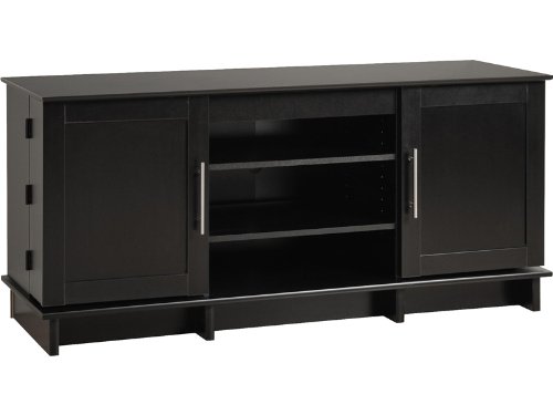 Weight Capacity - 125 lbs Shaker style finish on console doors 6 adjustable shelves Brushed metal door handles Accommodates flat panel Plasma and LCD TVs up to 60'' Sliding rear panels Assembly Required